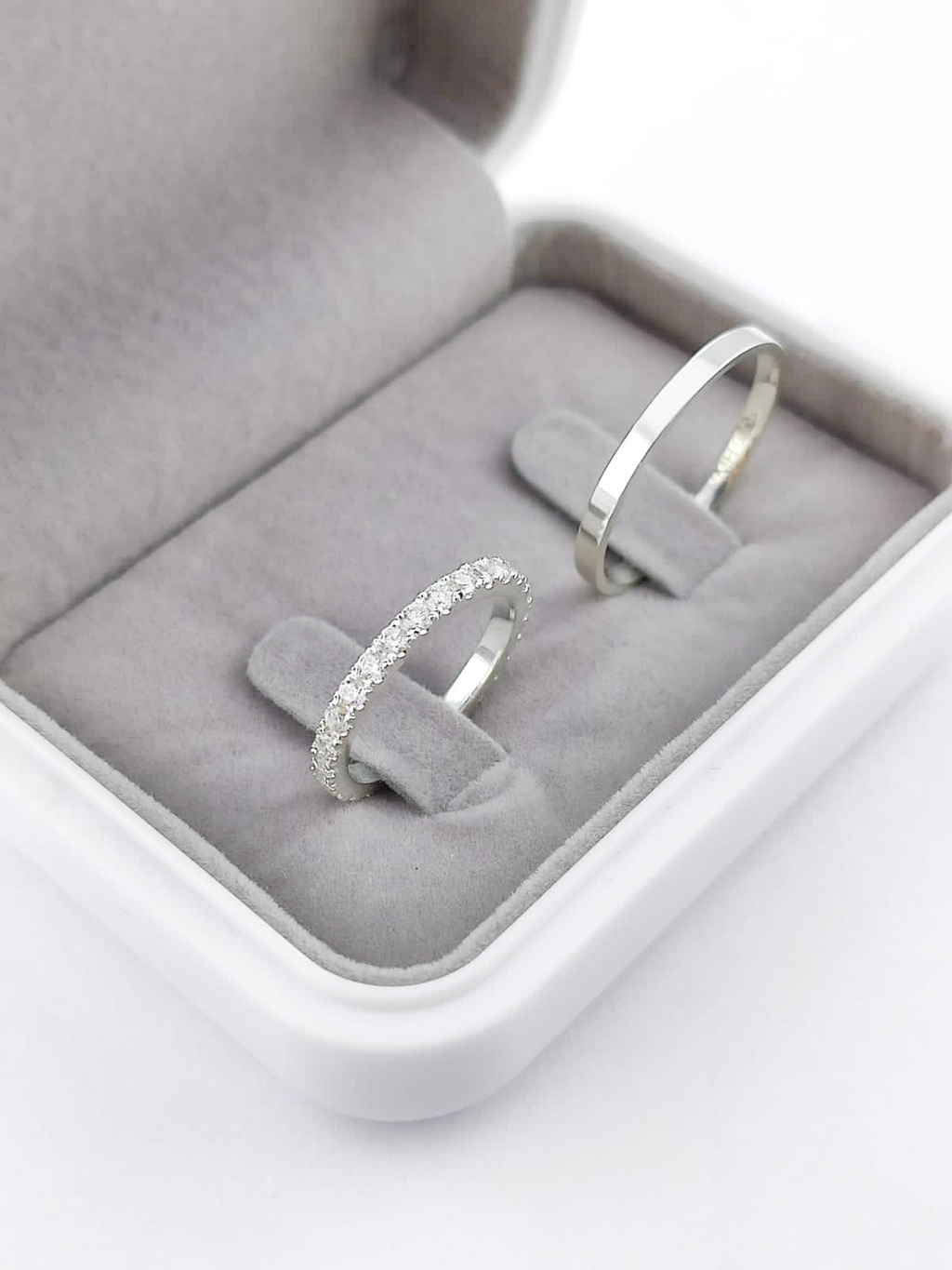 DETALHES Utilizamos em suas alianças de namoro a prata 950, que é o mais indicado para uso na joalheria por conta da sua durabilidade. Sua composição contém 95% de prata pura e 5% de liga especial.